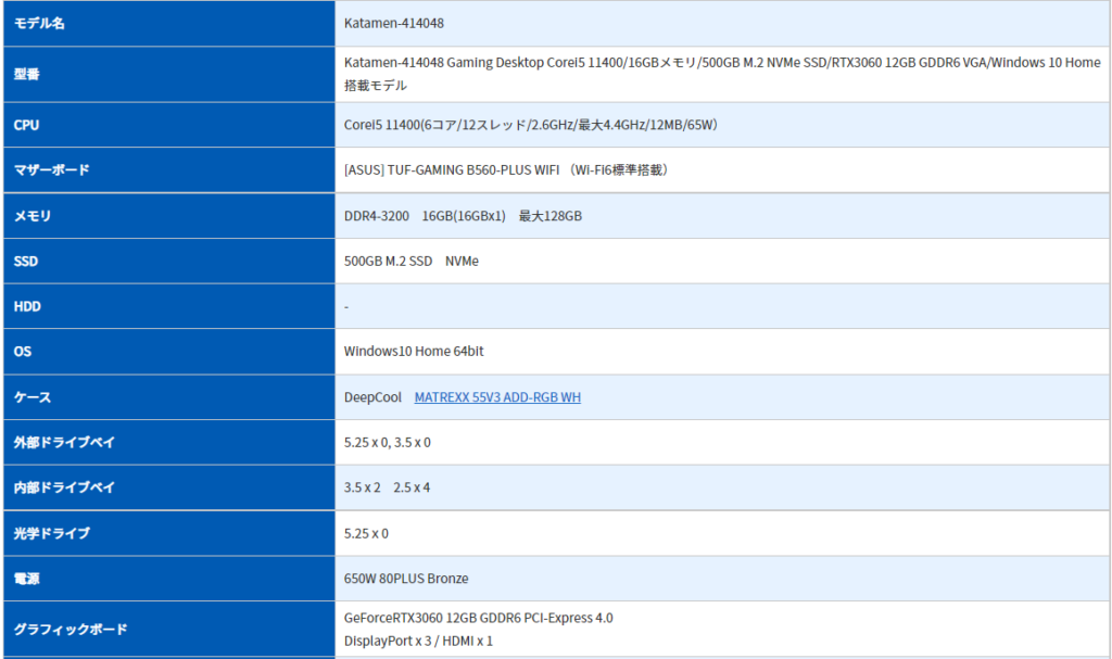 おすすめ機種①11世代i5-11400&RTX-3060搭載モデル