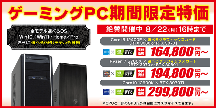 おすすめ機種 G-GEAR GA5A-D221/B Ryzen7 5700X × RTX3080 期間限定特価